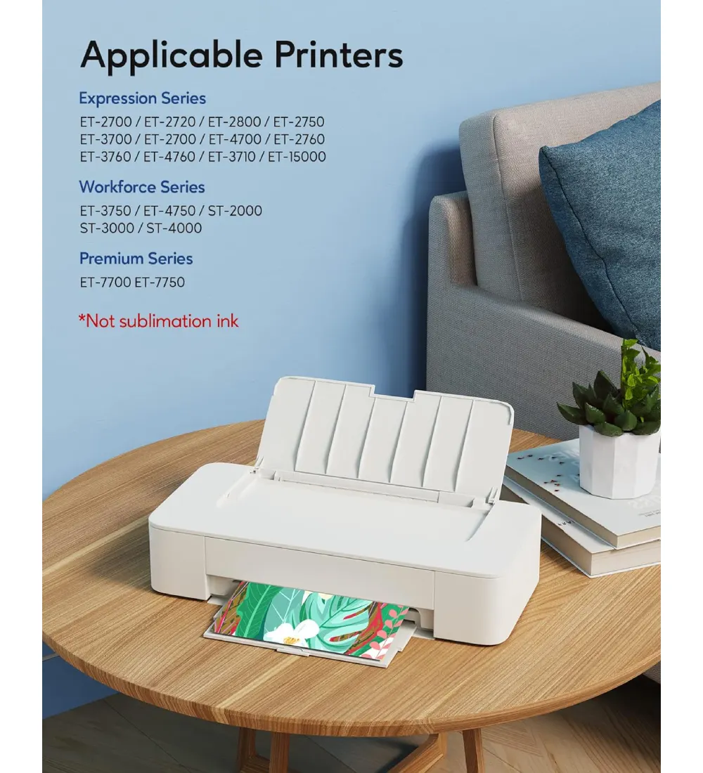 - Matching Printers: For Epson ET-2850 ET-3830 ET-3850 ET-2760 ET-3760 ET-15000 ET-4760 ET-4850 ET-2700 ET-2750 ET-3710 ET-3750 ET-4750 ET-3700 ST-2000 ST-3000 ST-4000 Printer, use the Ceeboo Compatible Refill Ink Bottle Replacement.