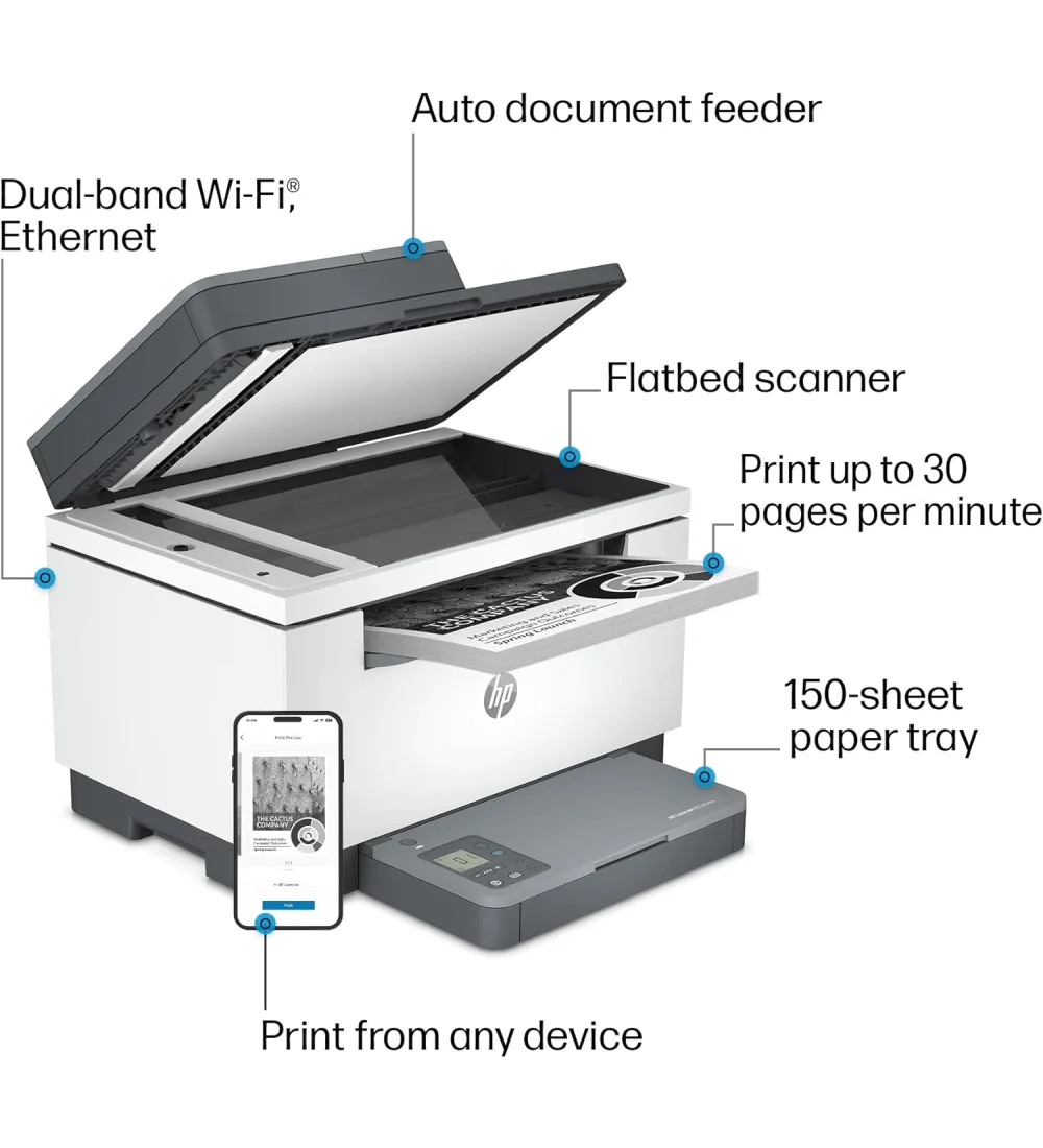 HP LaserJet Wireless Monochrome All-in-One Printer with built-in Ethernet